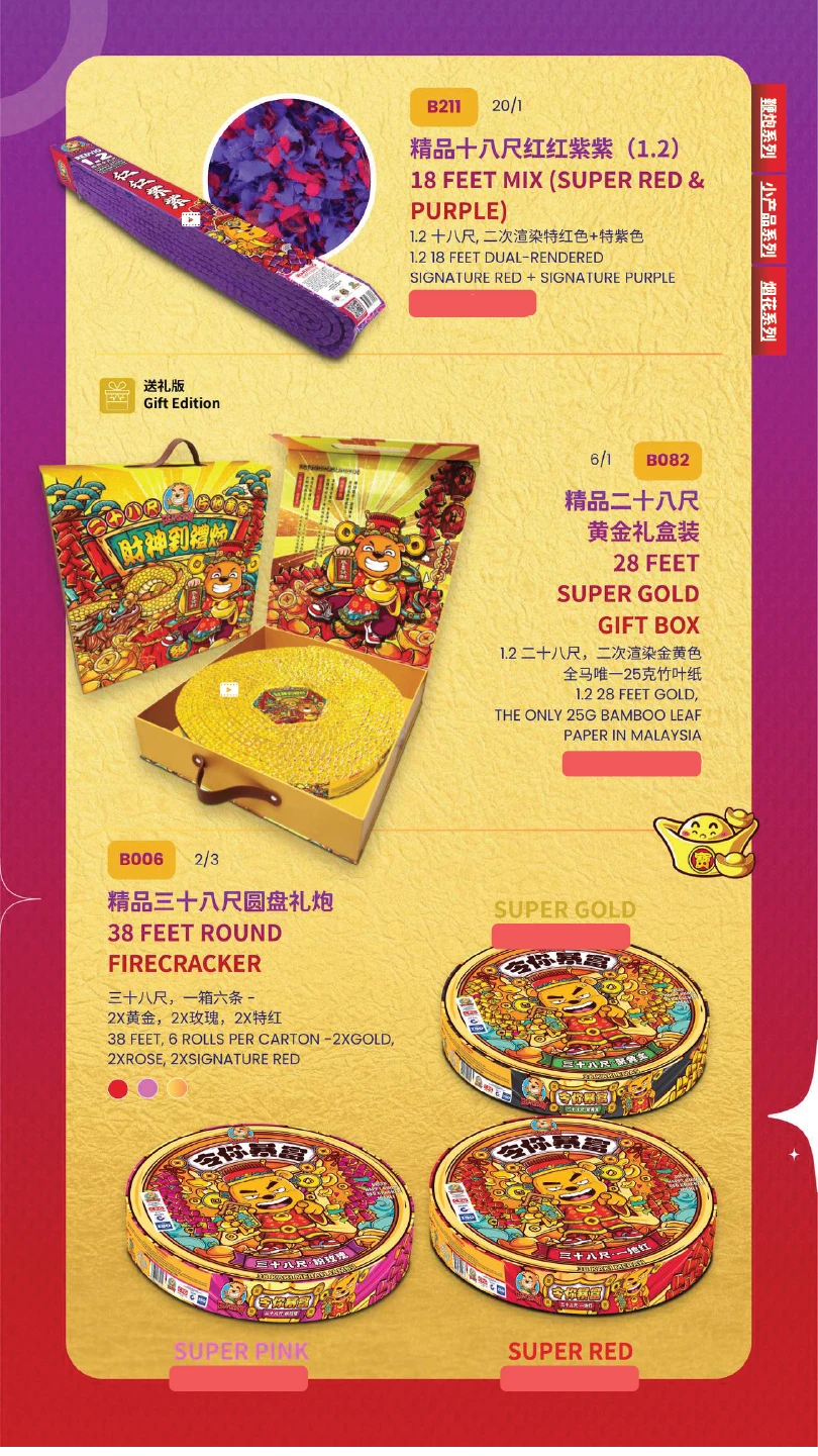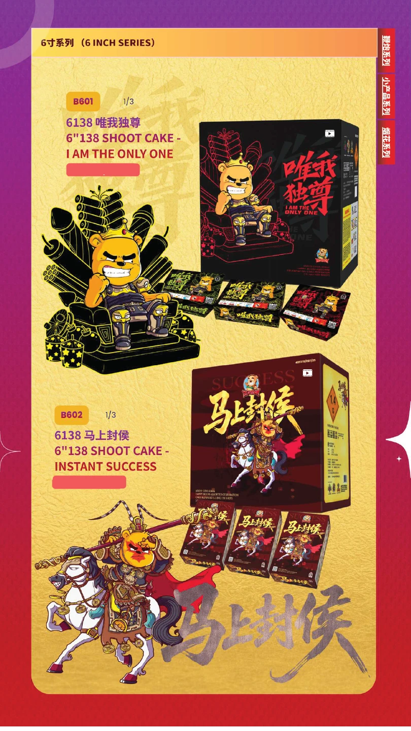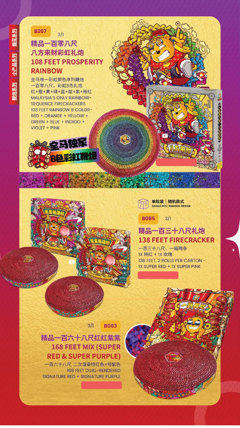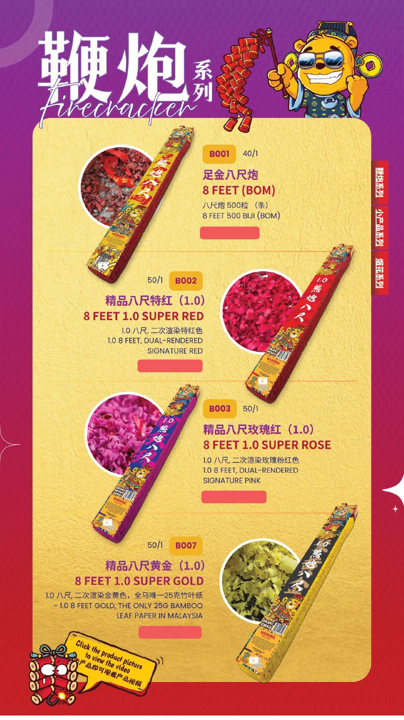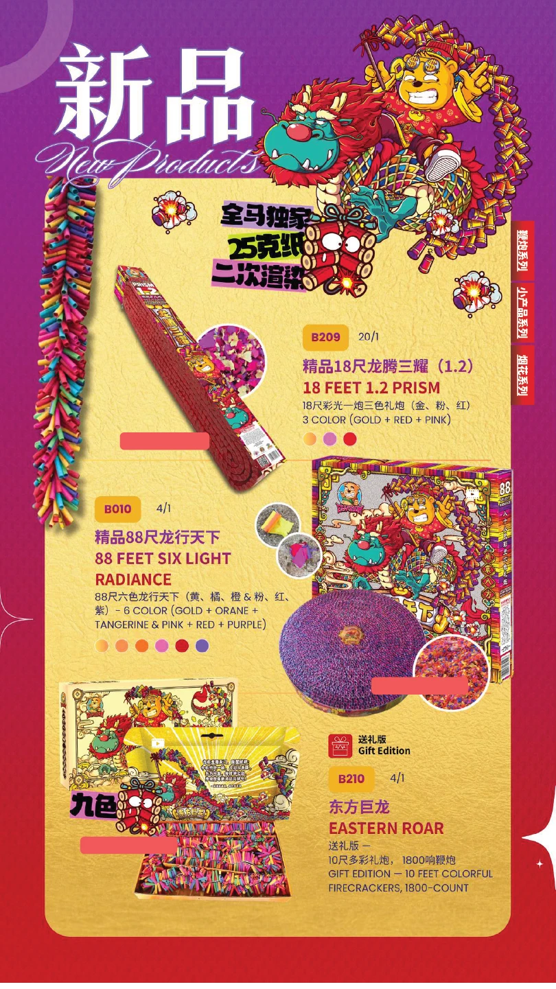 1) 本公司烟花皆有主点火引(橙色贴纸)及备用点火引(蓝色贴纸)。如烟花有断引情况,请静候一会,撕开蓝色贴纸并点燃后备引即可。如烟花断引无点燃后备引本公司一概不受理 及不作任何赔偿。望周知。 All of our fireworks come with a main fuse (marked with an orange sticker) and abackup fuse (marked with a blue sticker). In case of a fuse failure, please peel backthe blue sticker and ignite the backup fuse. If a fuse fails and the backup fuse is notignited, our company will not be responsible for any claims or compensation. Thankyou for your understanding.