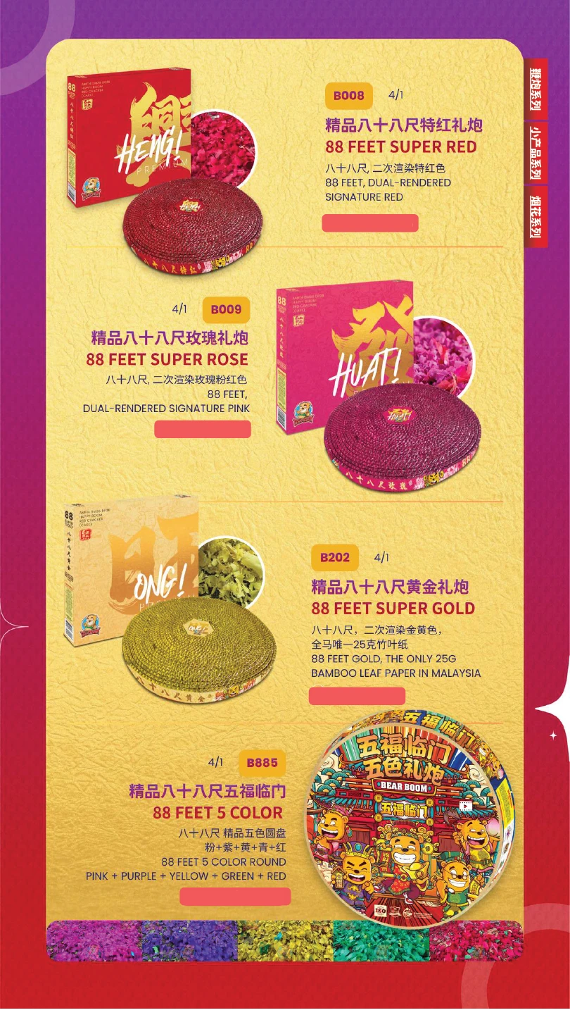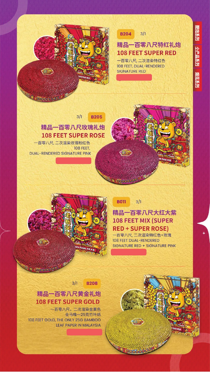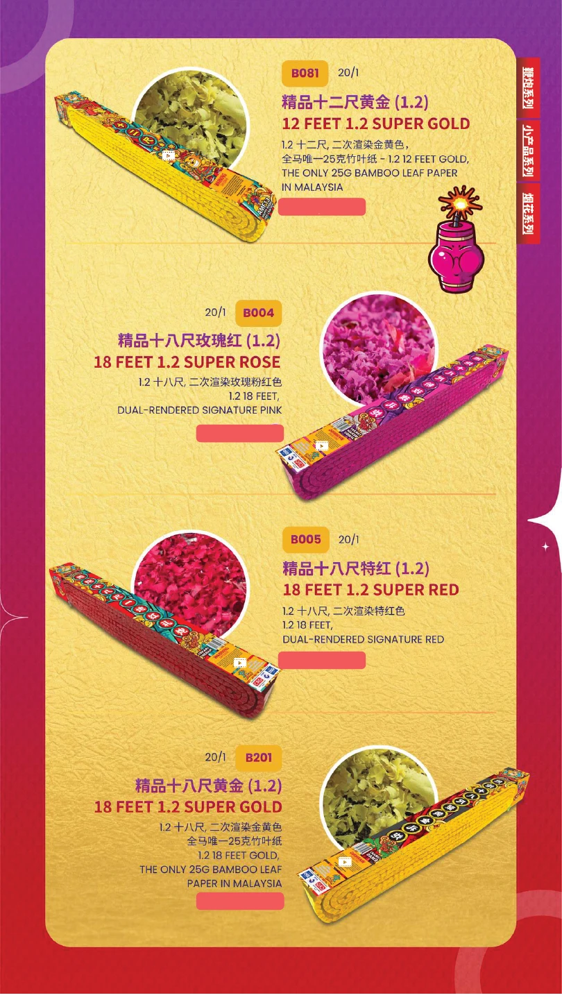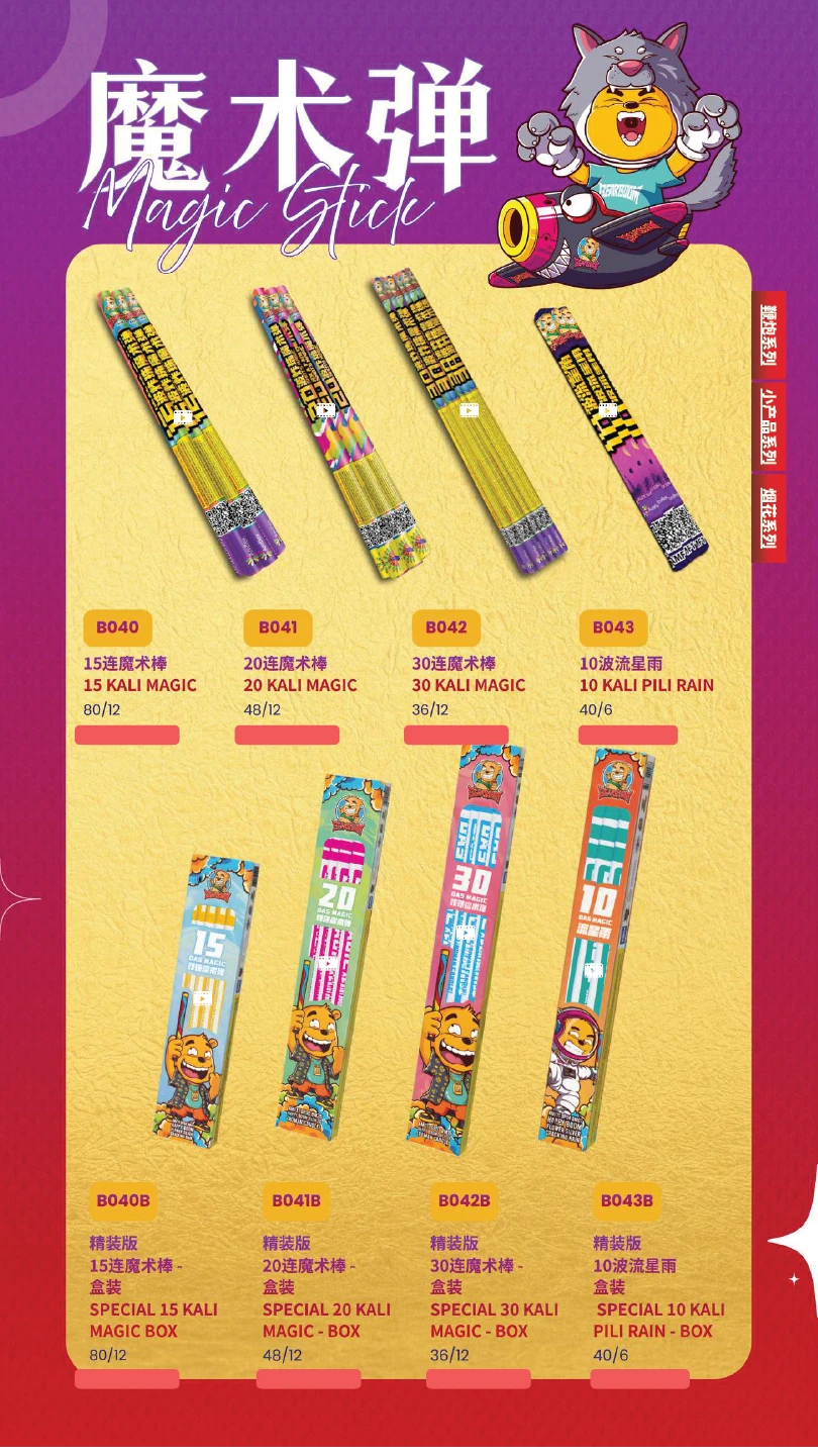 1) 本公司烟花皆有主点火引(橙色贴纸)及备用点火引(蓝色贴纸)。如烟花有断引情况,请静候一会,撕开蓝色贴纸并点燃后备引即可。如烟花断引无点燃后备引本公司一概不受理 及不作任何赔偿。望周知。 All of our fireworks come with a main fuse (marked with an orange sticker) and abackup fuse (marked with a blue sticker). In case of a fuse failure, please peel backthe blue sticker and ignite the backup fuse. If a fuse fails and the backup fuse is notignited, our company will not be responsible for any claims or compensation. Thankyou for your understanding.