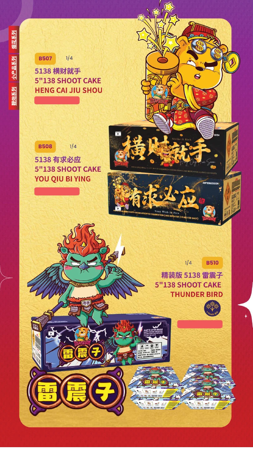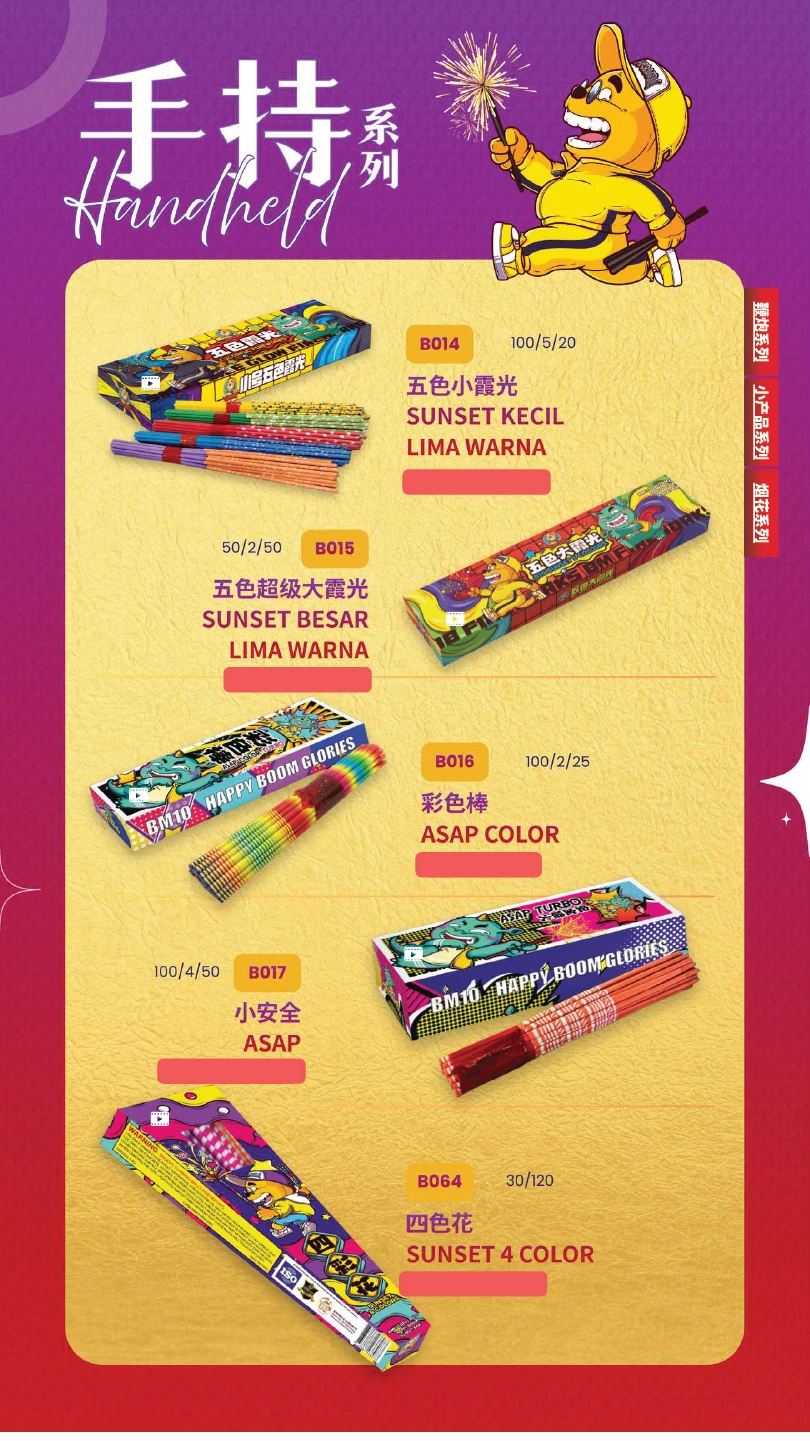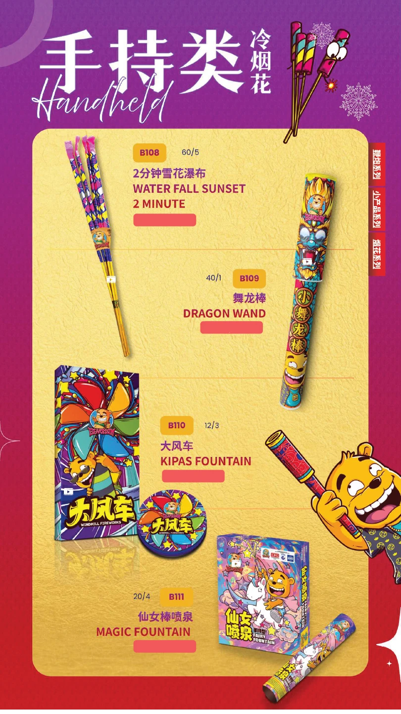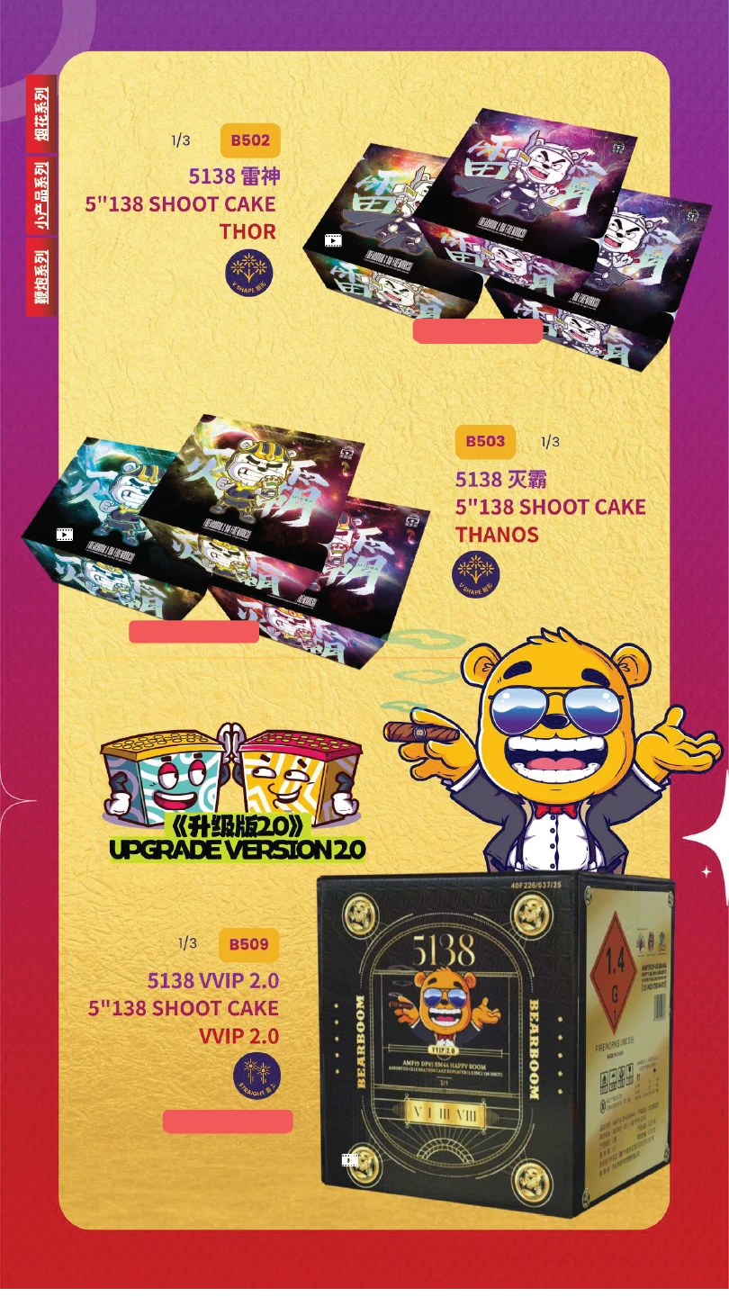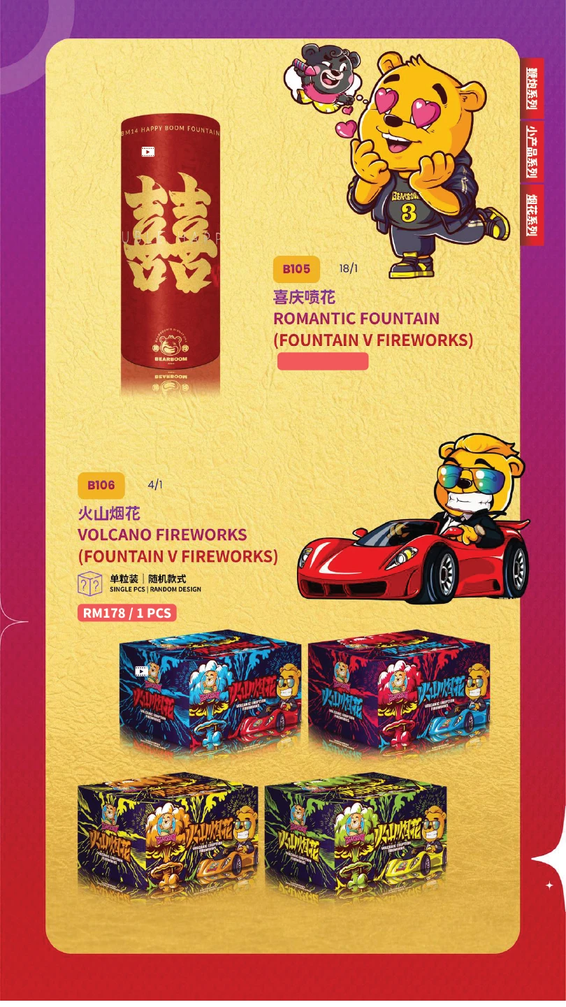4) 如不幸发生炸筒事故,本公司将不会负责除烟花以外的任何赔偿。(包括受伤) In the event of an unfortunate explosion incident, our company will not be responsible for any compensation other than for fireworks.