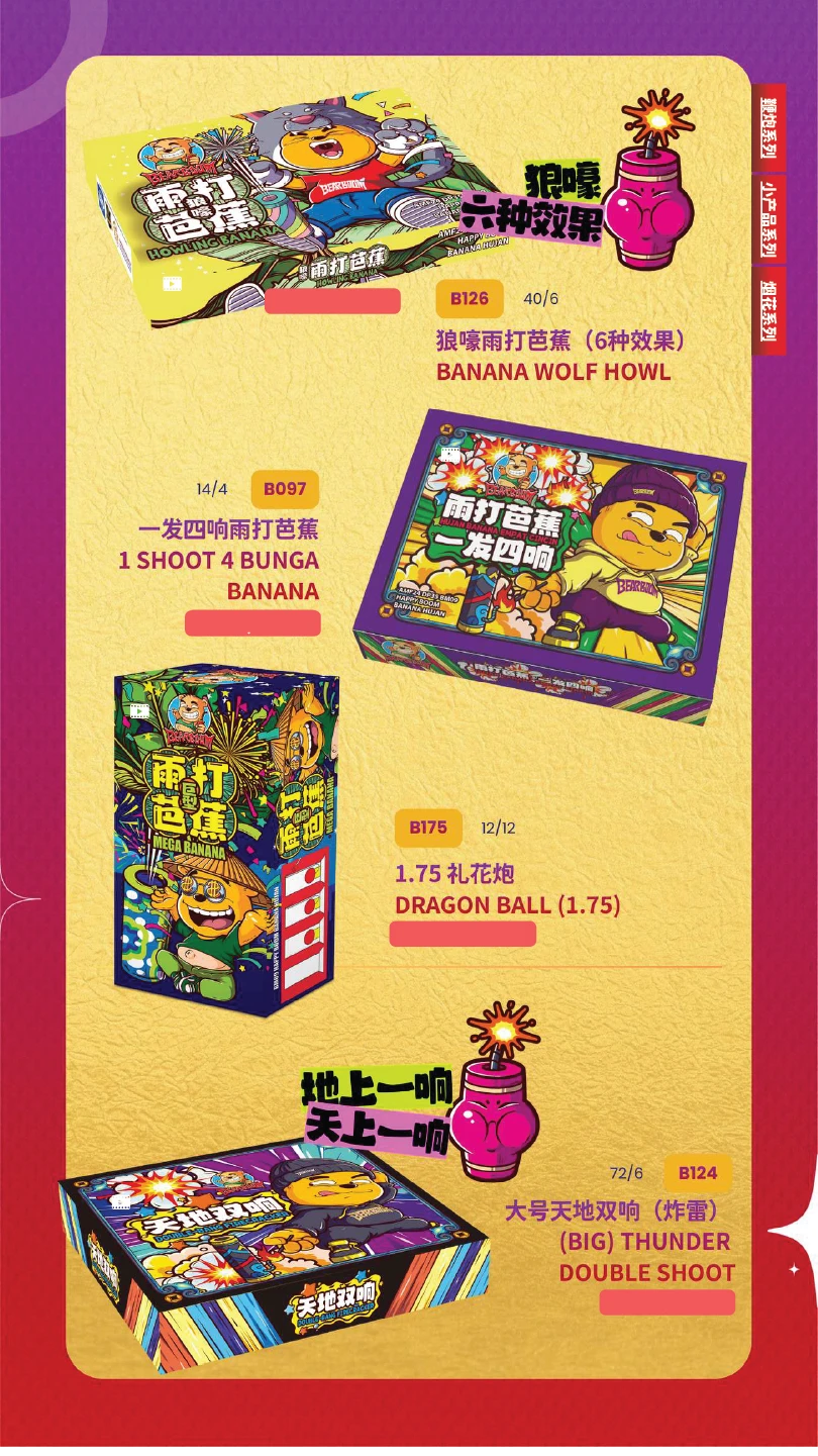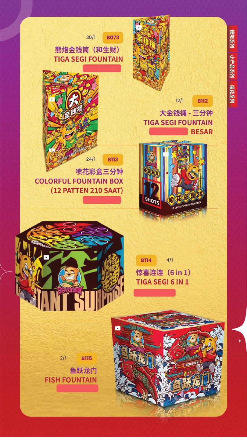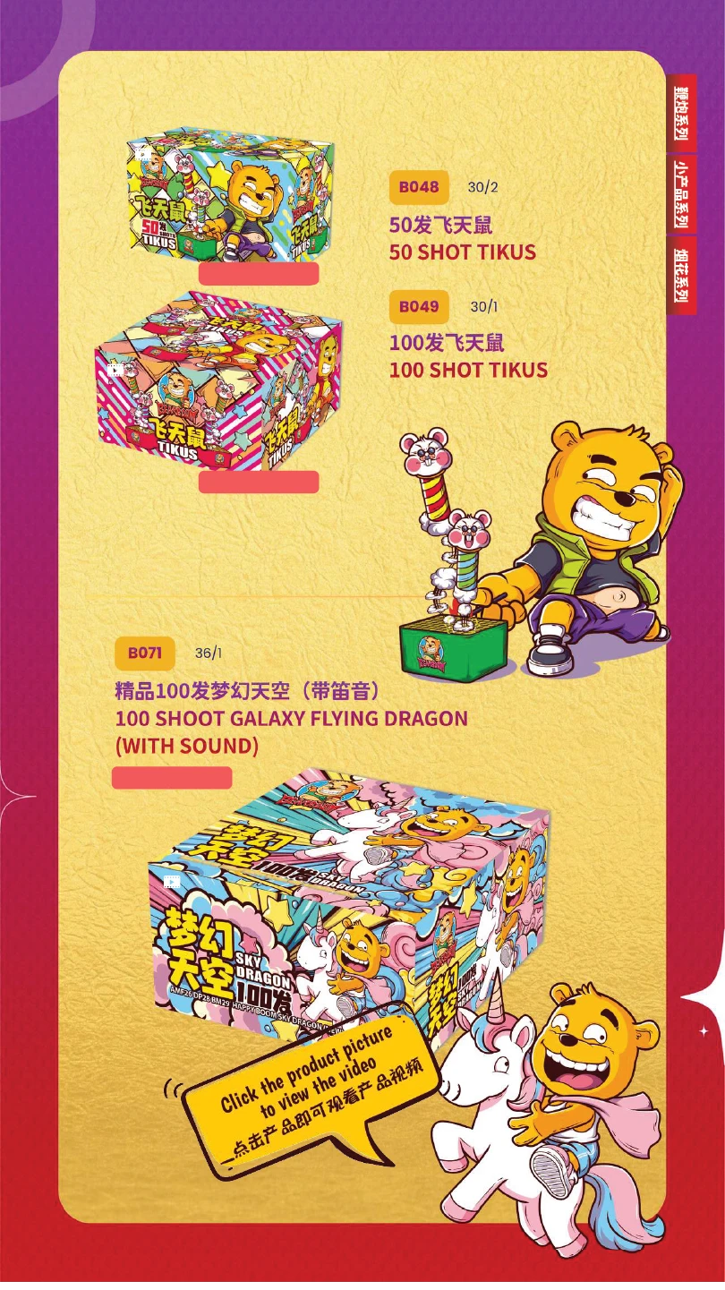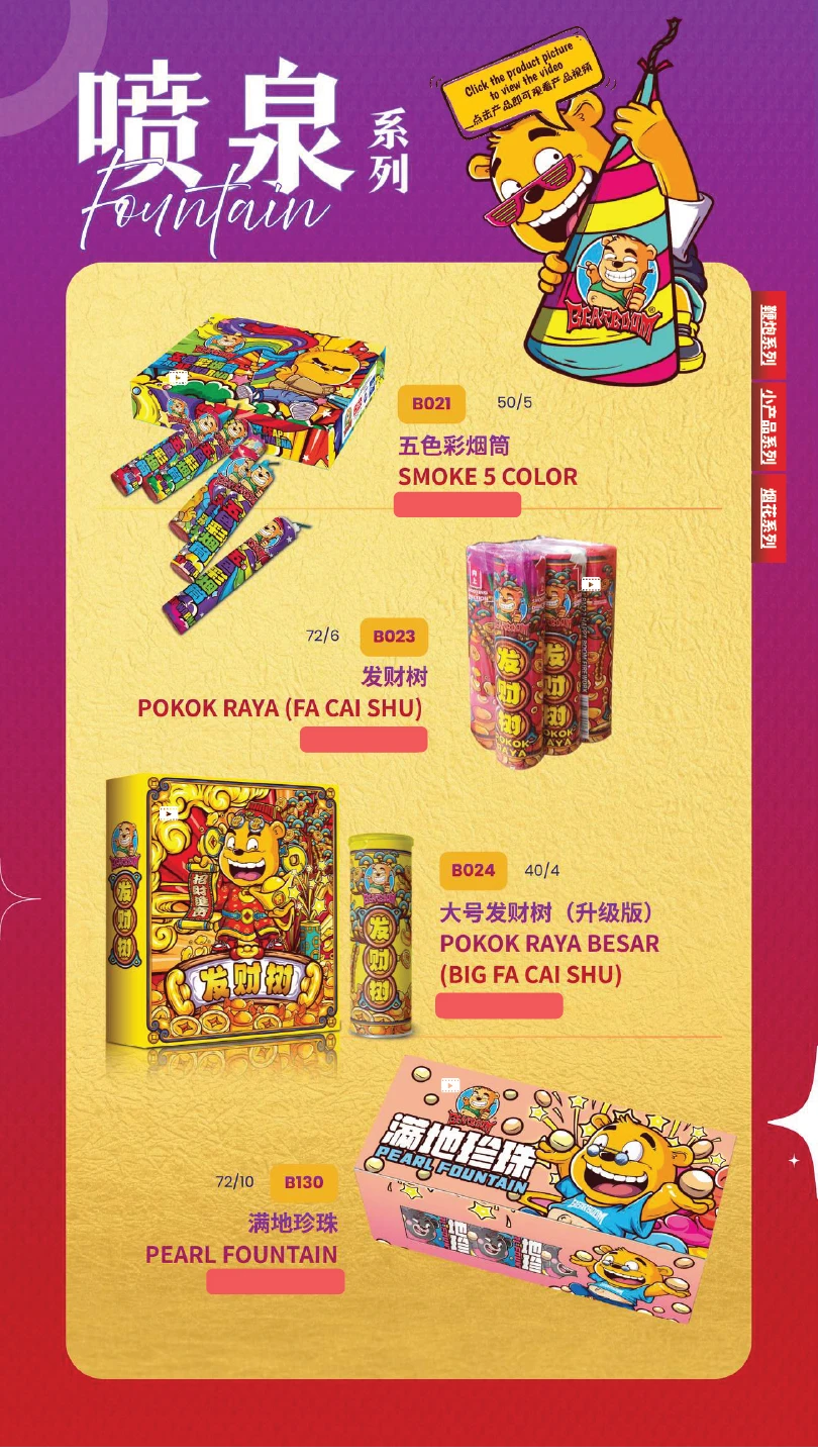 4) 如不幸发生炸筒事故,本公司将不会负责除烟花以外的任何赔偿。(包括受伤) In the event of an unfortunate explosion incident, our company will not be responsible for any compensation other than for fireworks.
